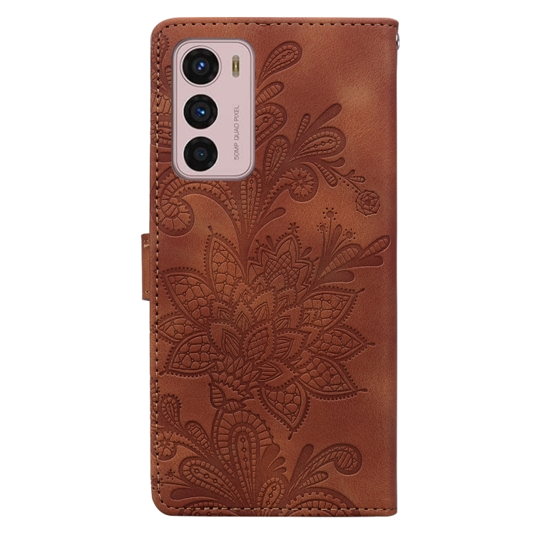 Funda de Cuero para Motorola Moto G42 con Hebilla Magnética y Diseño Floral En Relieve (Marrón)