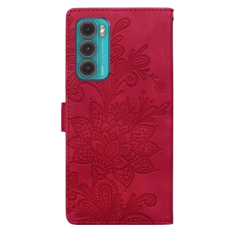 Funda de Cuero con Hebilla Magnética y Diseño Floral para Motorola Moto G60 (Rojo)