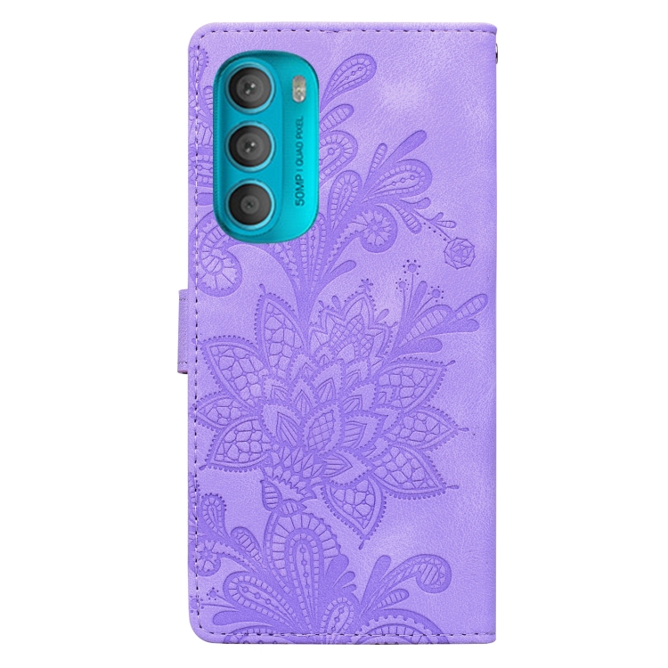 Funda de Cuero Motorola Moto G71 5G con Hebilla Magnética y Diseño Floral (Morado)