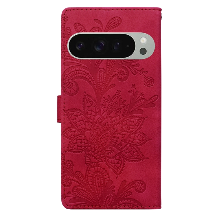 Funda de Cuero con Hebilla Magnética y Encaje Floral para Google Pixel 9/9 Pro (Rojo)