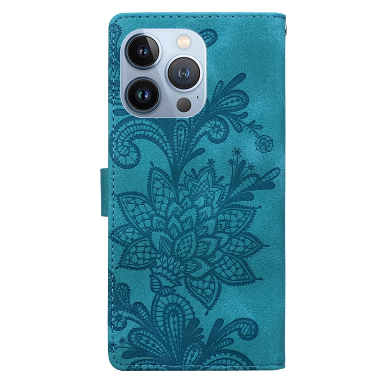 Funda de Cuero con Hebilla Magnética y Encaje Floral En Relieve para iPhone 14 Pro Max (Verde)