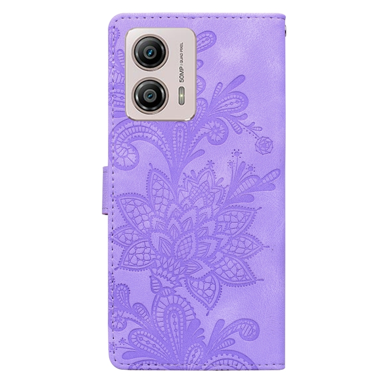 Funda de Cuero con Hebilla Magnética y Encaje Floral para Motorola Moto G53/G13/G23 (Morado)