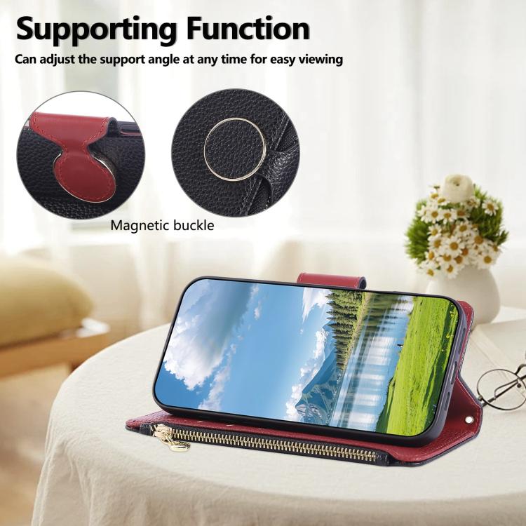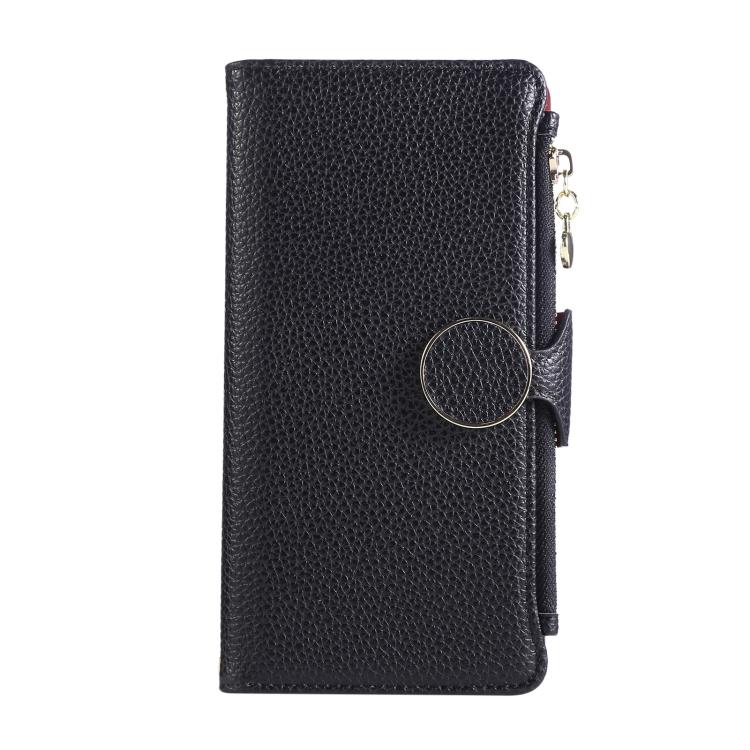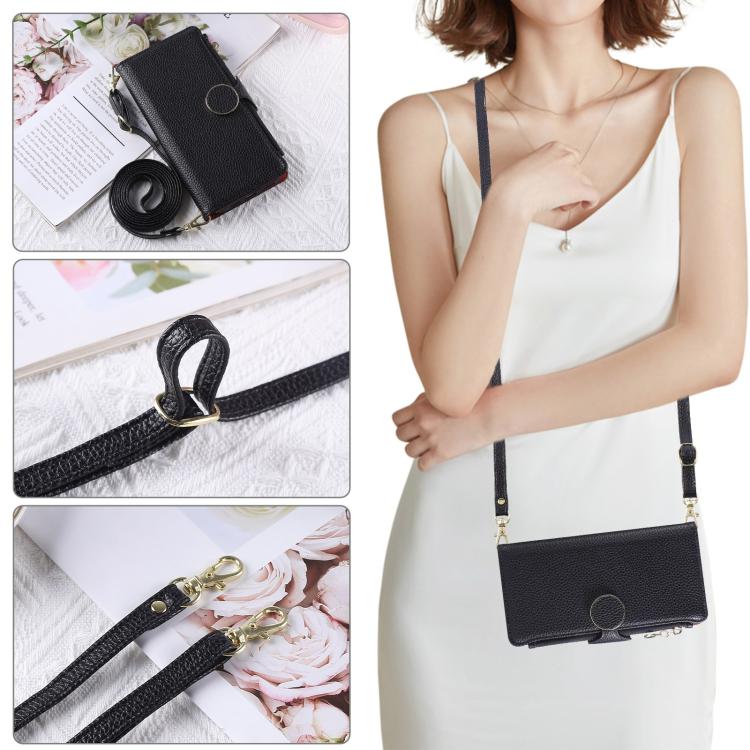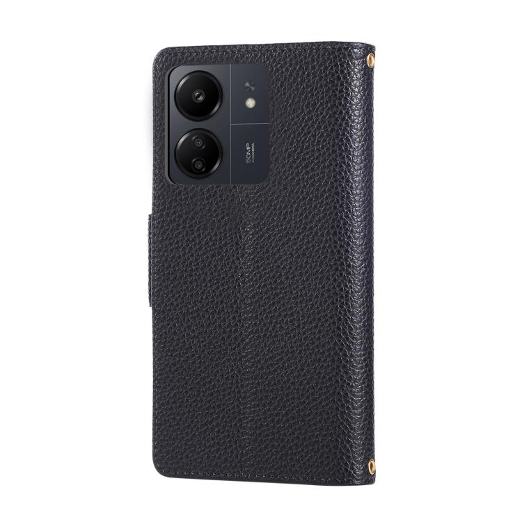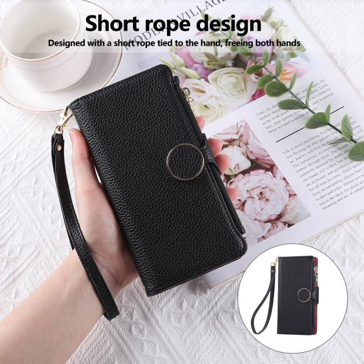 Funda de cuero con hebilla redonda y cremallera para Redmi 13C, con correa cruzada (negra)