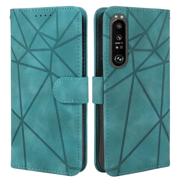 Funda de Cuero para Sony Xperia 1 III con Líneas Geométricas y Tacto Sedoso (Verde)