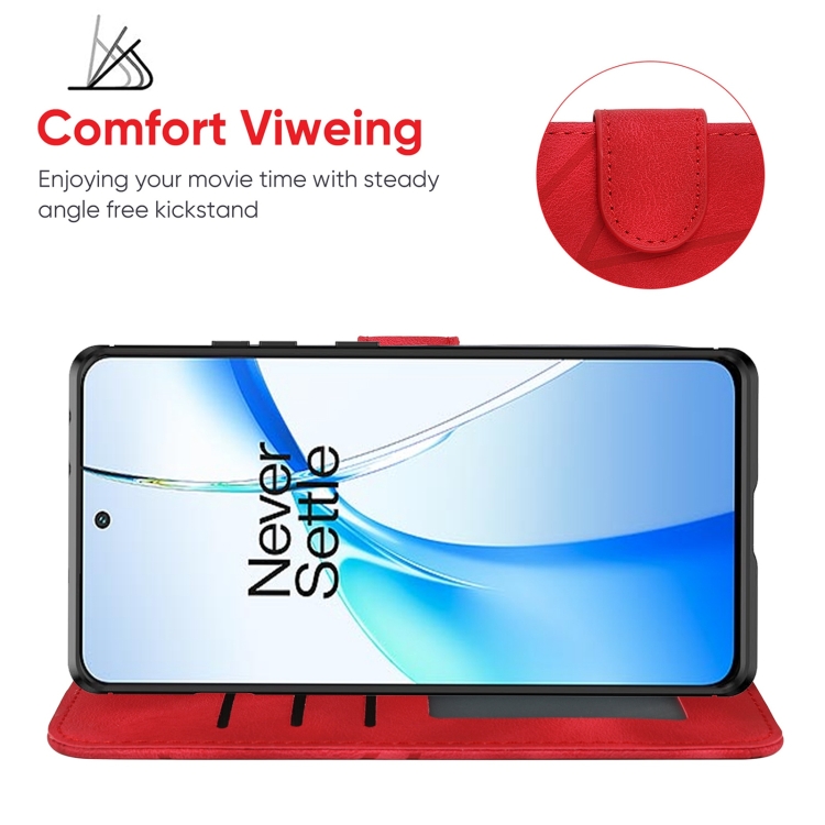 Funda de Cuero para OnePlus Nord Ce4 Líneas Geométricas Tacto Suave (Rojo)