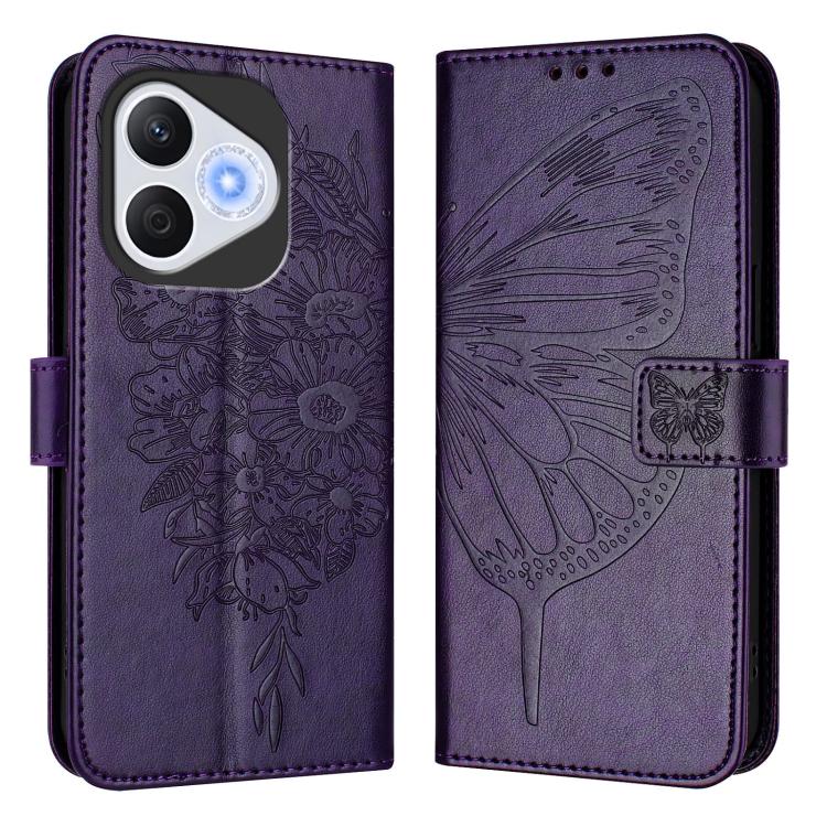 Funda de Cuero con Mariposa en Relieve para Honor 400 Lite (Morado Oscuro)