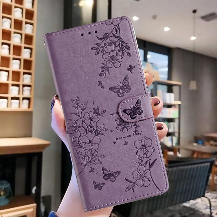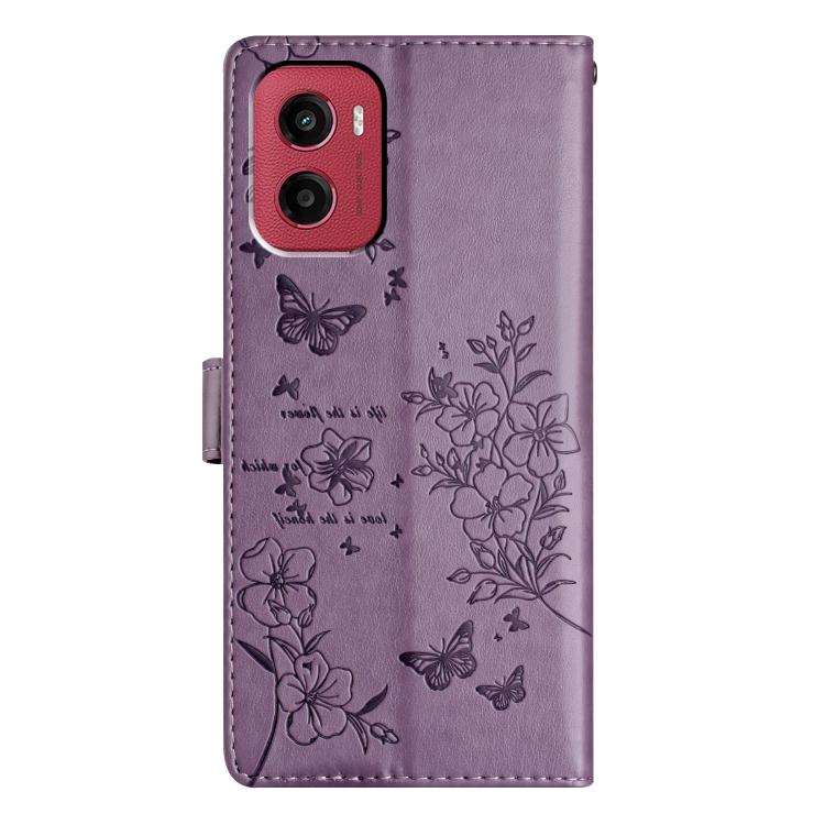 Funda de Cuero para Motorola Moto G05 con Mariposas y Flores (Morado)