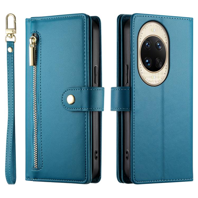 Funda de cuero con nueve ranuras para tarjetas y cremallera para Huawei nova 14 Ultra (azul)