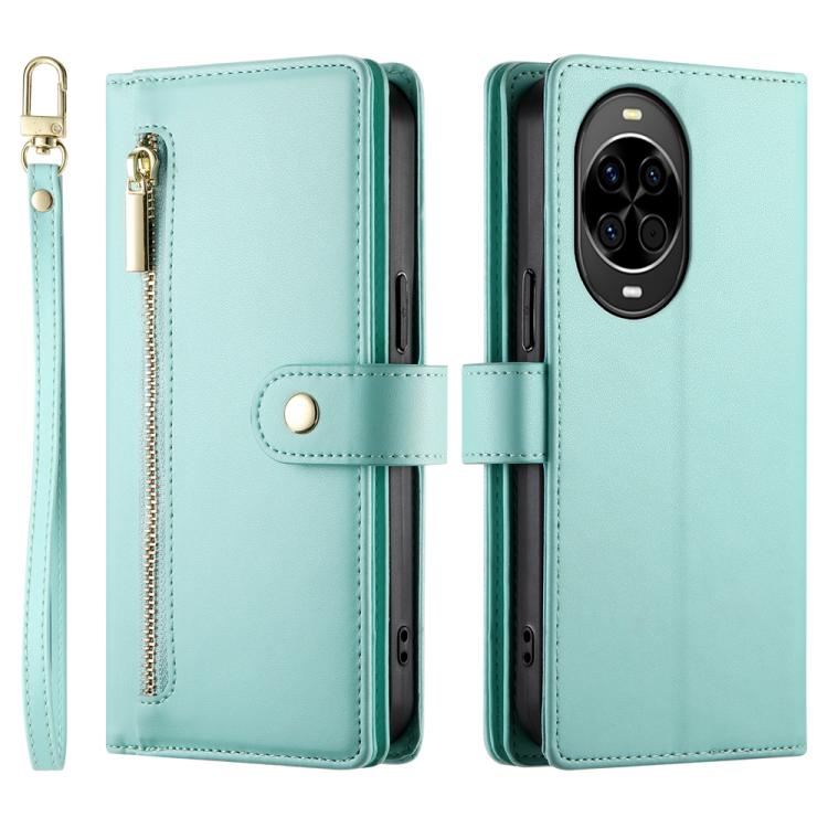 Funda de cuero con nueve ranuras para tarjetas y cremallera para Huawei Nova 14 (verde menta)