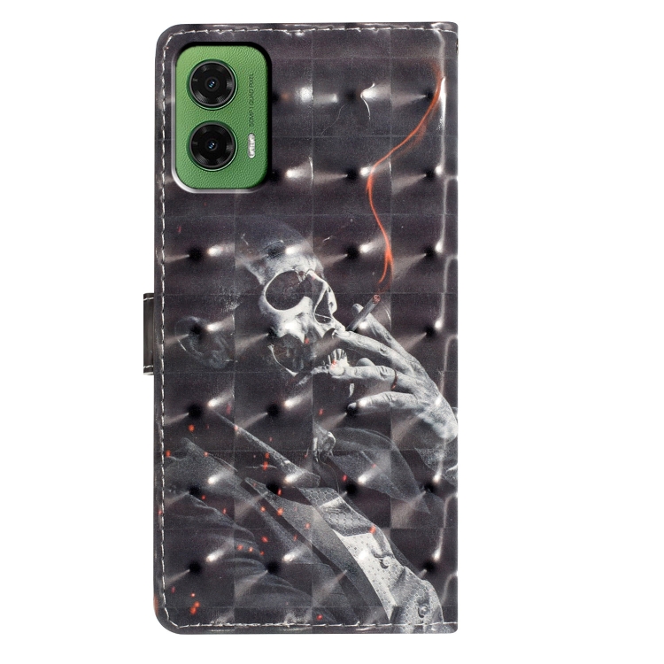 Funda de Cuero con Patrón 3D para Motorola Moto G35 (Calavera)