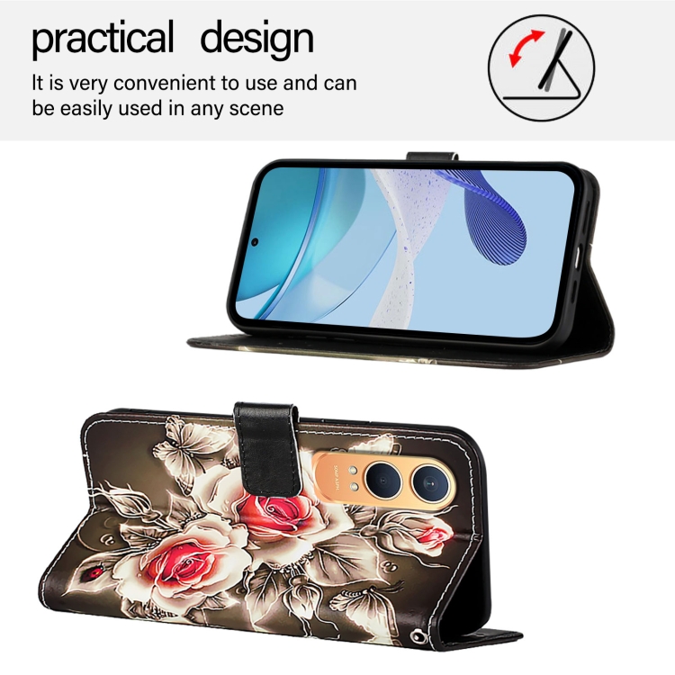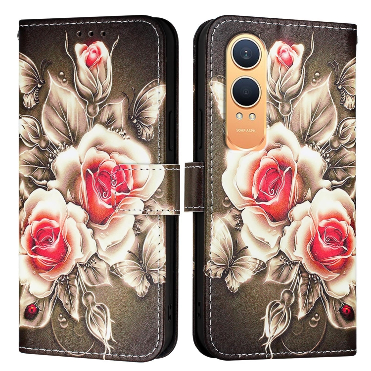 Funda de Cuero para OnePlus Nord CE4 Lite con Patrón de Dibujo de Colores (Rosas Sobre Negro)