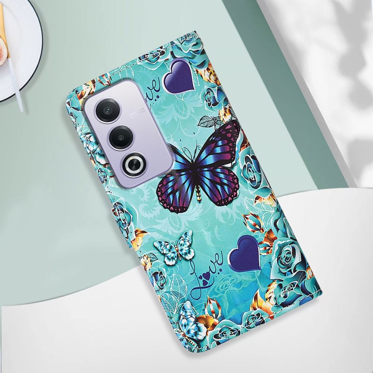 Funda de Cuero con Patrón de Dibujo de Colores para Oppo A3 Pro 5G (Mariposa Cariñosa)