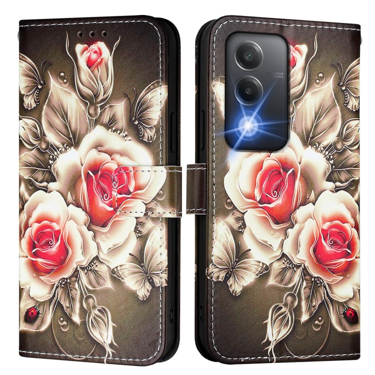 Funda de Cuero con Patrón de Dibujo de Colores para Oppo K12X 5G Global (Rosas Sobre Negro)