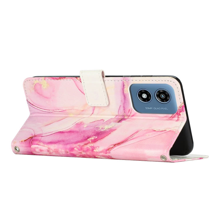 Funda de Cuero con Patrón Mármol para Motorola Moto G Play 4G (2024) (Oro Rosa)