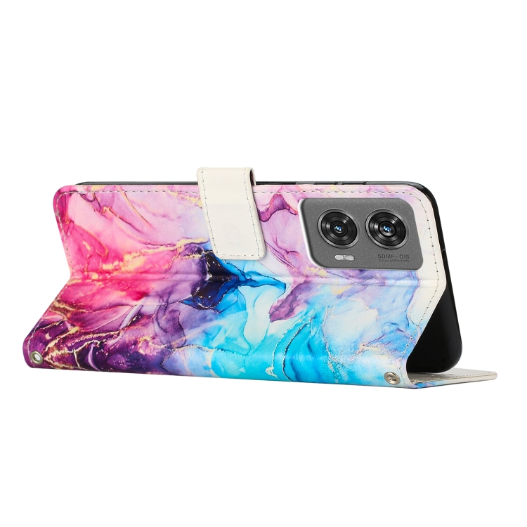 Funda de Cuero con Patrón de Mármol para Motorola Moto G Stylus 5G (2024) (Rosa y Morado)