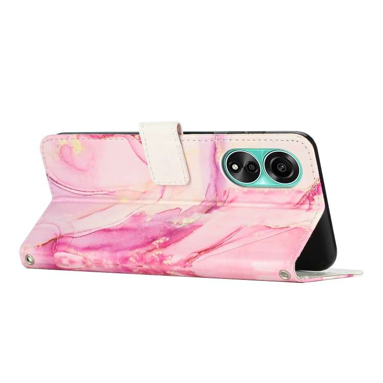 Funda de Cuero con Patrón de Mármol Pintado para Oppo A78 4G (Oro Rosa)