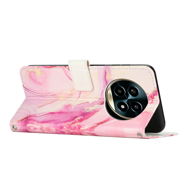 Funda de Cuero con Patrón de Mármol Pintado para Realme 13 Pro 5G Global / 13 Pro+ 5G (Oro Rosa)