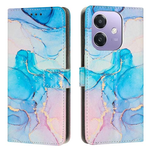 Funda de Cuero con Patrón de Mármol Pintado para Teléfono Oppo A3X (Rosa y Verde)