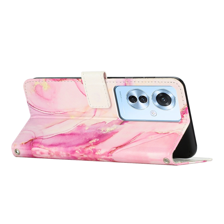 Funda de Cuero con Patrón de Mármol Pintado para Teléfono Oppo Reno11 F Global (Oro Rosa)
