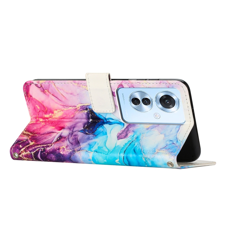 Funda de Cuero con Patrón de Mármol Pintado para Teléfono Oppo Reno11 F Global (Rosa y Morado)
