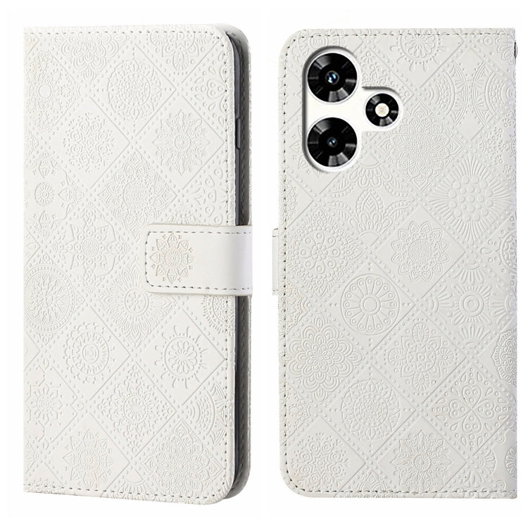 Funda de Cuero con Patrón en Relieve Estilo Étnico para Infinix Hot 30 Play NFC (Blanco)