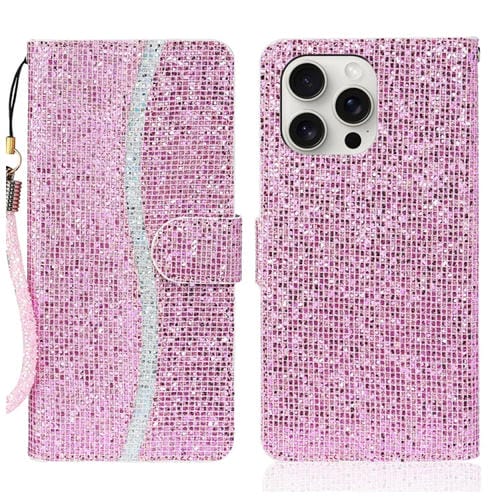 Funda de Cuero con Purpurina en Polvo para iPhone 16 Pro Max (Rosa)