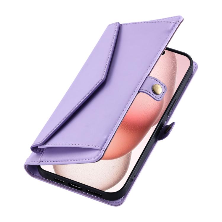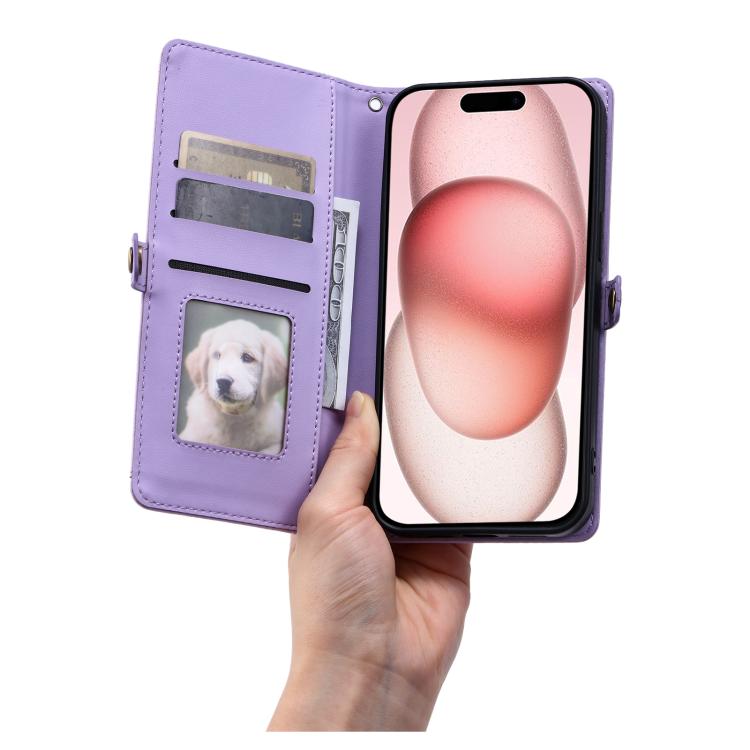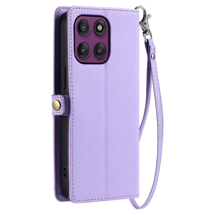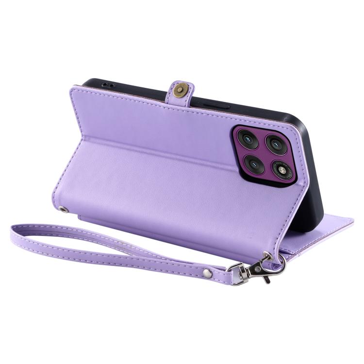 Funda de cuero con ranura para múltiples tarjetas y cordón para Motorola Edge 60 Pro (morado)