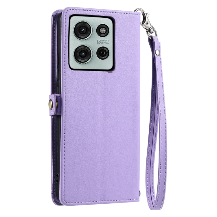 Funda de Cuero para Motorola Moto G75 5G con Ranura para Tarjetas y Cordón (Morado)