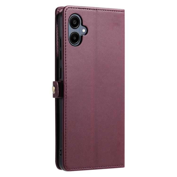Funda de cuero con ranura para múltiples tarjetas y cordón para Samsung Galaxy A07 4G (rojo vino)