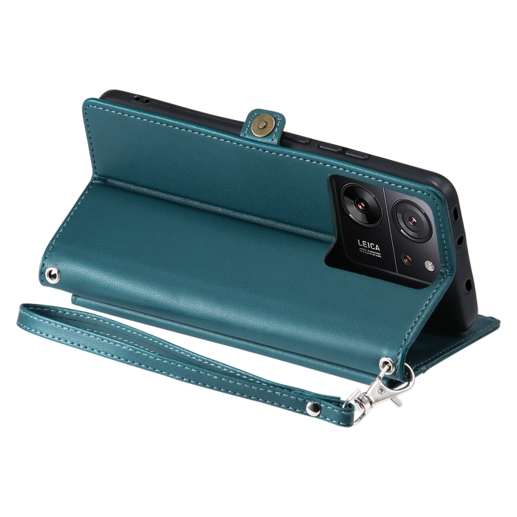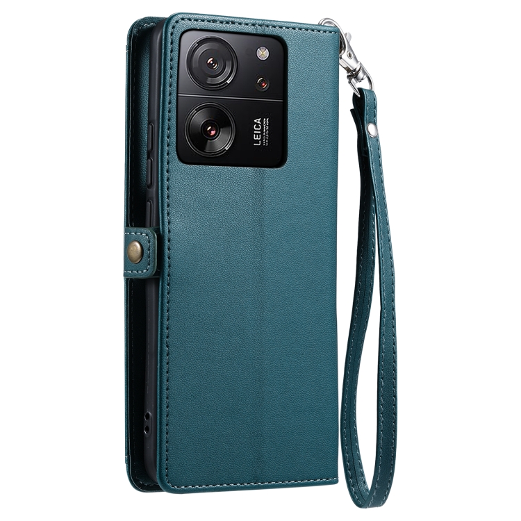 Funda de Cuero con Ranura para Múltiples Tarjetas y Cordón para Xiaomi 13T/13T Pro (Verde)
