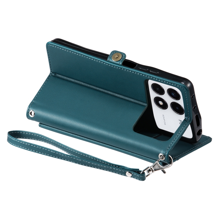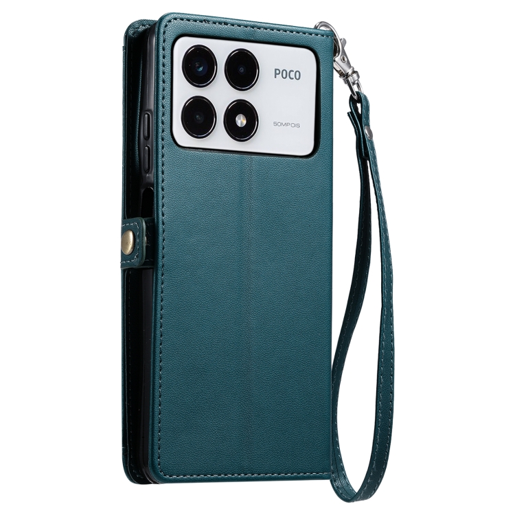 Funda de Cuero con Ranura para Múltiples Tarjetas y Cordón para Xiaomi Poco F6 Pro (Verde)