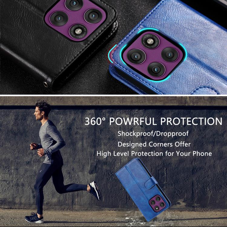 Funda de cuero con ranuras para tarjetas para Motorola Edge 60 Pro (azul)