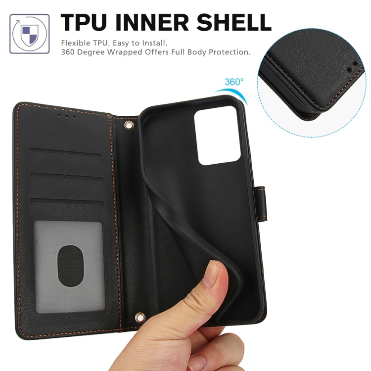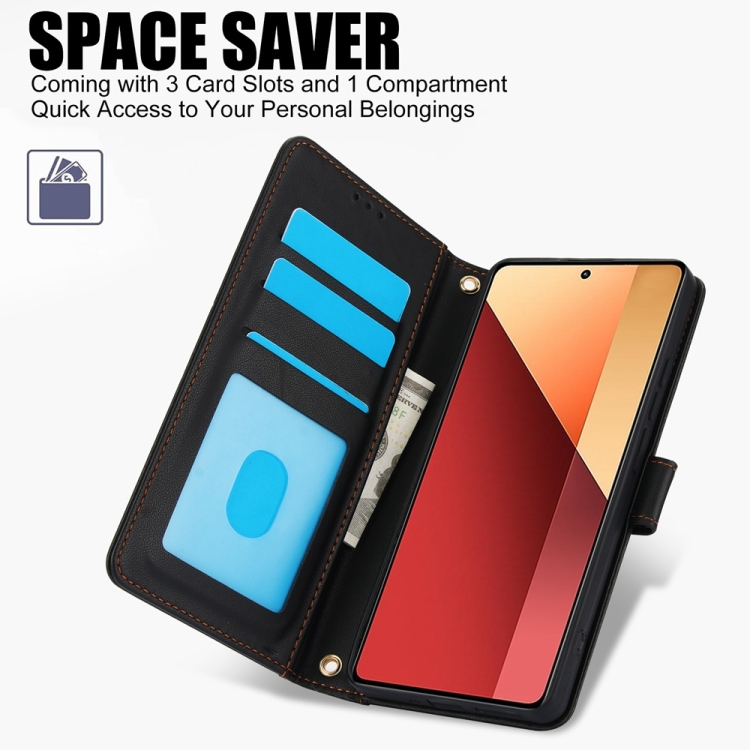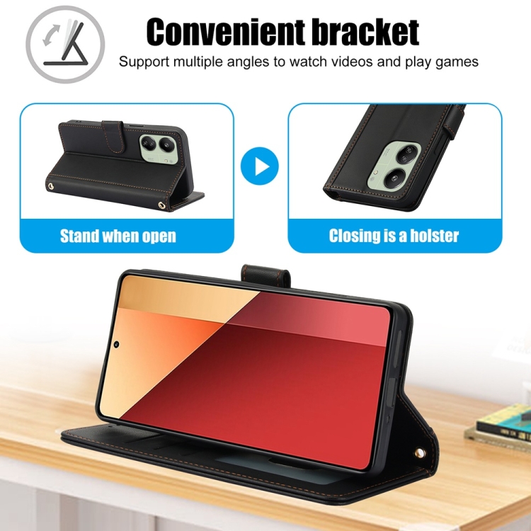 Funda de Cuero con Ranuras para Tarjetas y Diseño de Piel Sintética con Cordón Doble para Redmi 13C 4G / Poco C65 / Poco M6 5G (Negro)