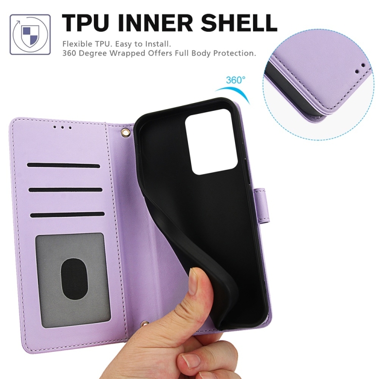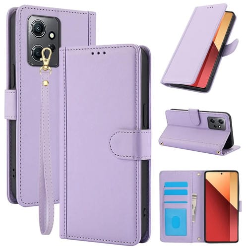 Funda de Cuero con Ranuras para Tarjetas y Tacto de Piel Global para Redmi Note 12 4G con Cordón Doble (Morado)