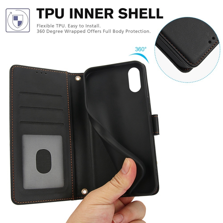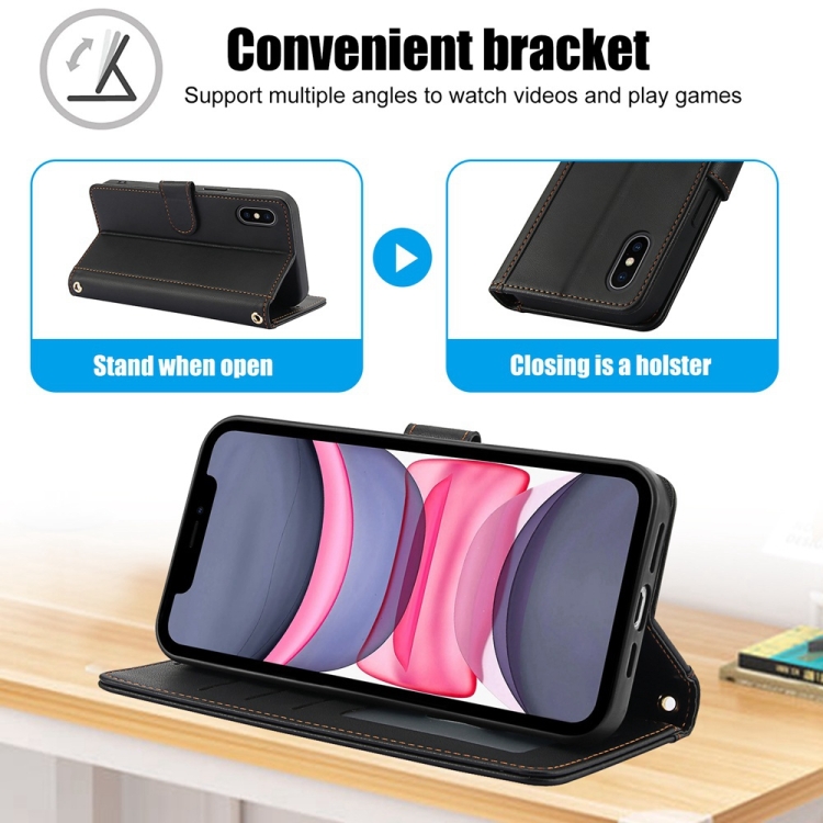 Funda de Cuero para iPhone X/Xs con Ranuras para Tarjetas y Cordón Doble (Negro)