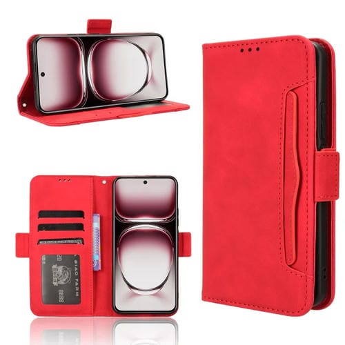 Funda de Cuero con Ranuras para Tarjetas y Textura de Piel de Becerro para Oppo Reno12 5G Global (Rojo)
