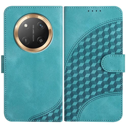 Funda de Cuero con Relieve de Cabeza de Elefante para Honor X9C Global con Cordón (Azul Claro)