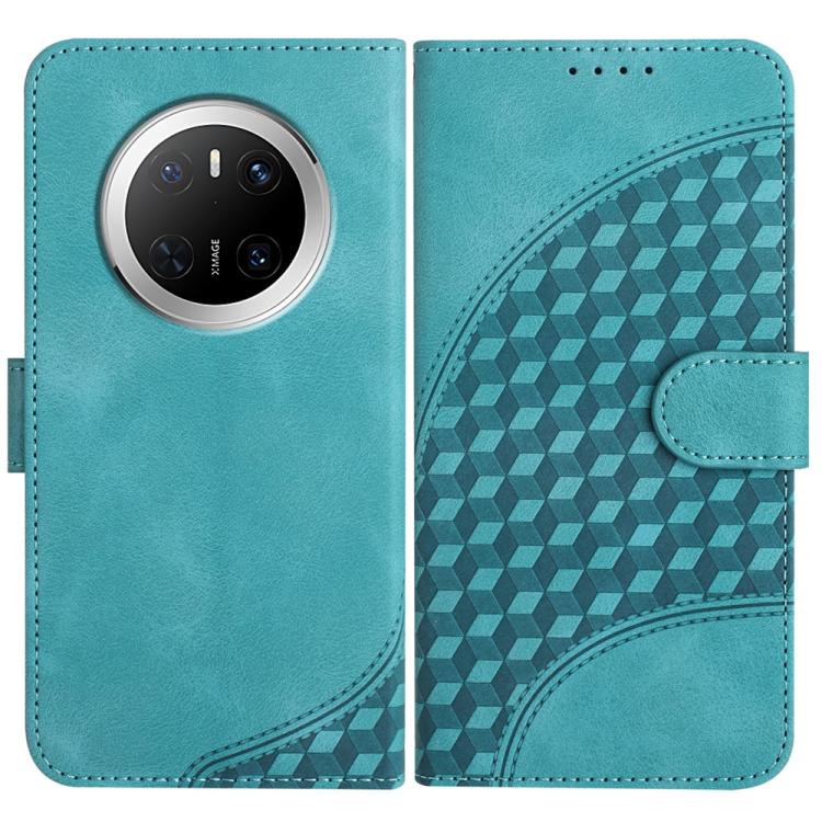 Funda de Cuero Huawei Mate 70 con Relieve de Cabeza de Elefante y Cordón (Azul Claro)