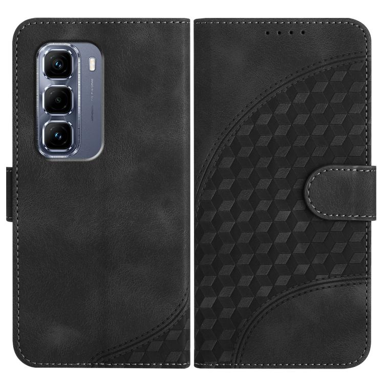 Funda de Cuero con Relieve Cabeza de Elefante para Infinix Hot 50 Pro 4G con Cordón (Negro)