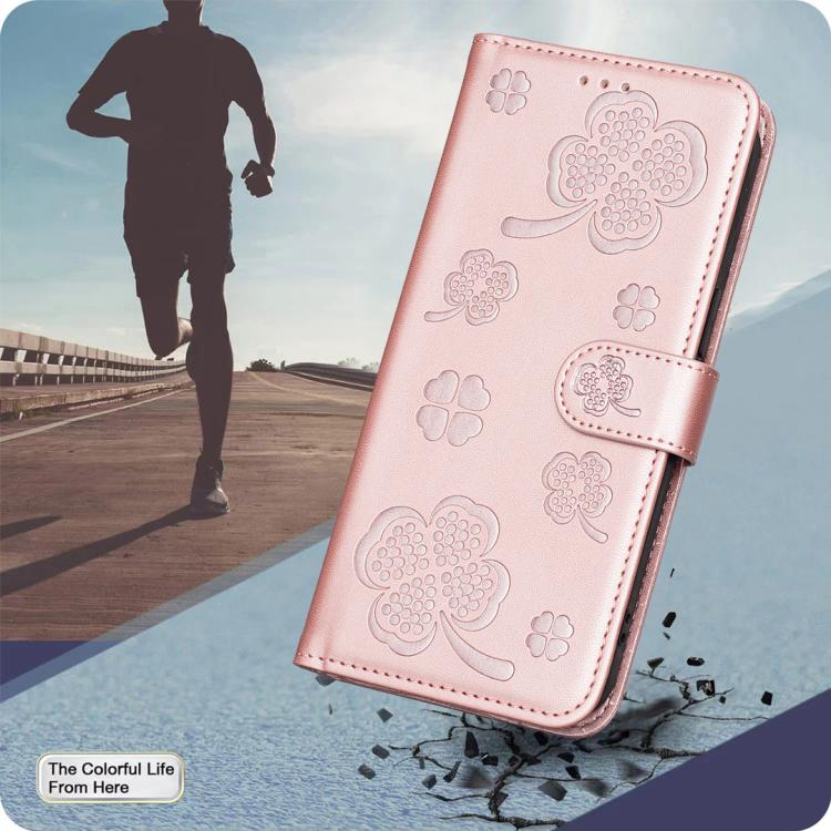 Funda de Cuero con Relieve de Cuatro Hojas para Honor X8C 4G (Rosa)