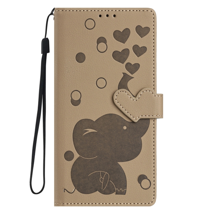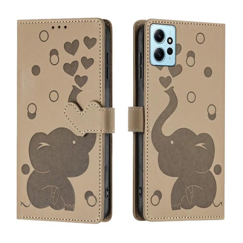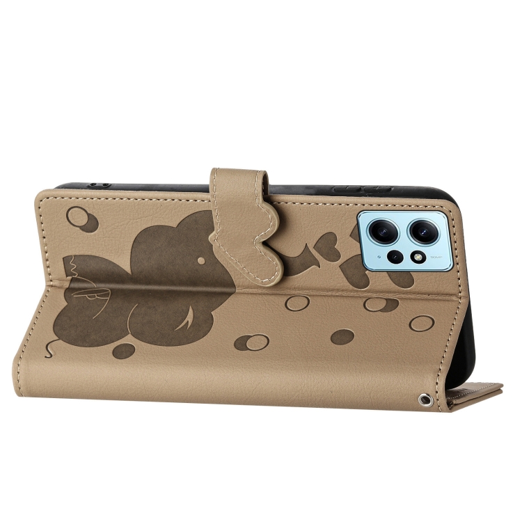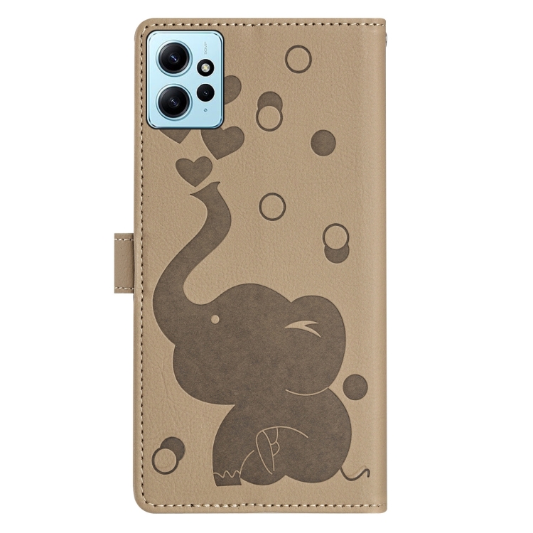 Funda de Cuero con Relieve de Elefante de Dibujos Animados para Redmi Note 12 4G (Caqui)