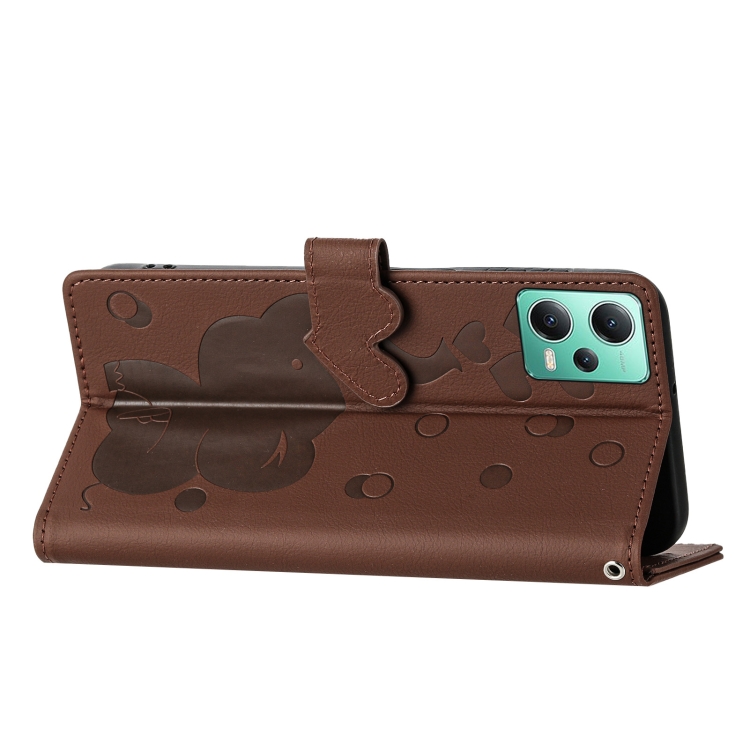 Funda de Cuero con Relieve de Elefante de Dibujos Animados para Redmi Note 12 5G (Marrón)