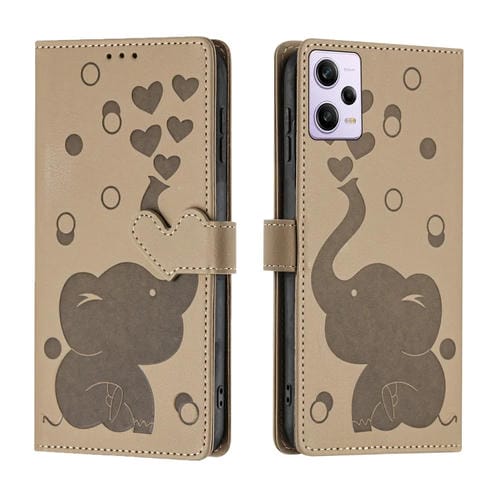 Funda de Cuero con Relieve de Elefante de Dibujos Animados para Redmi Note 12 Pro 5G (Caqui)