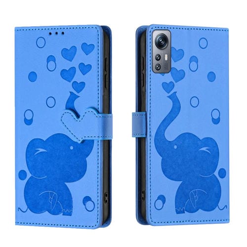 Funda de Cuero con Relieve de Elefante de Dibujos Animados para Redmi Note 12S 4G (Azul)