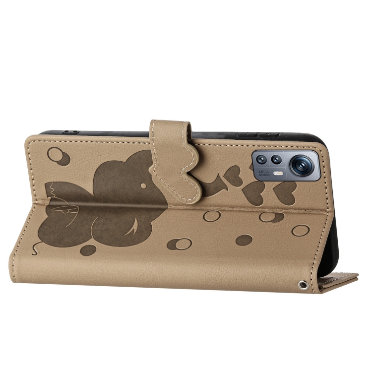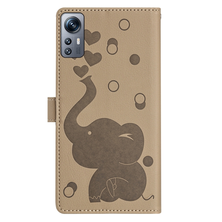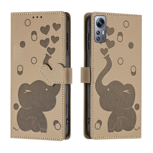 Funda de Cuero con Relieve de Elefante de Dibujos Animados para Redmi Note 12S 4G (Caqui)