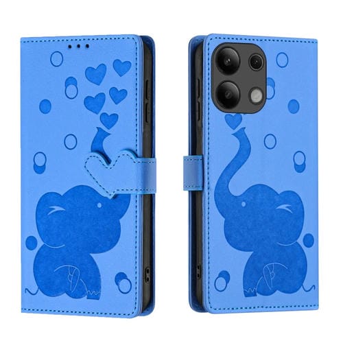Funda de Cuero con Relieve de Elefante de Dibujos Animados para Redmi Note 13 4G (Azul)