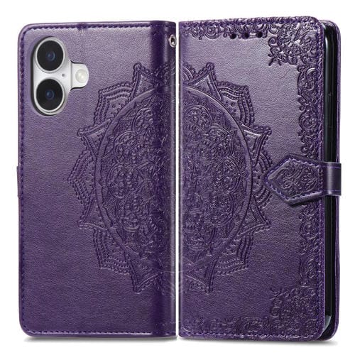 Funda de cuero con relieve de flor de mandala para iPhone 17 (morado)