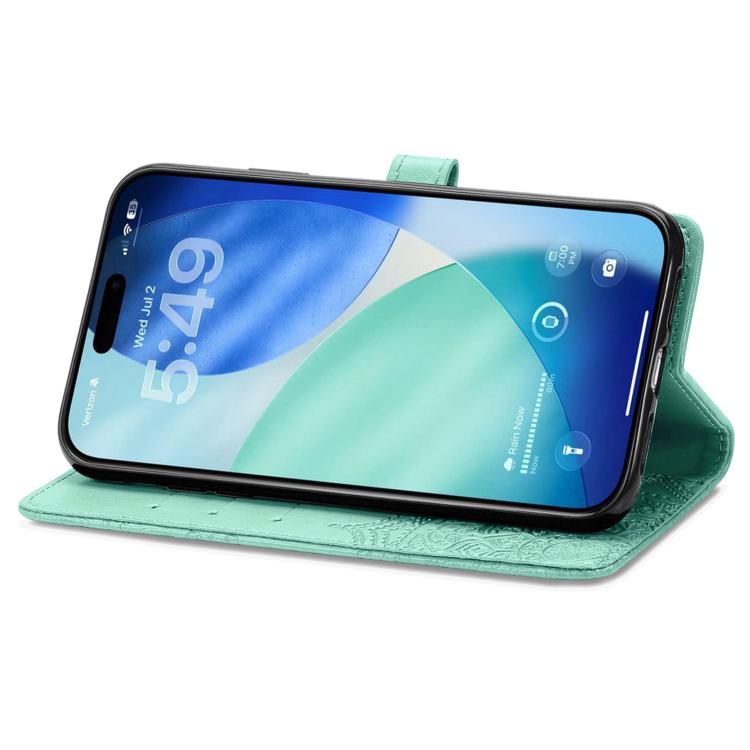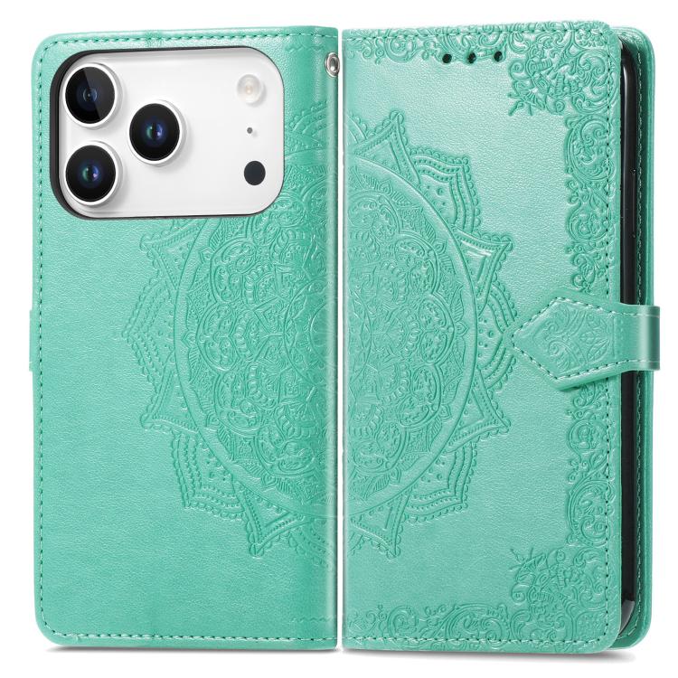Funda de cuero con relieve de flor de mandala para iPhone 17 Pro (verde)