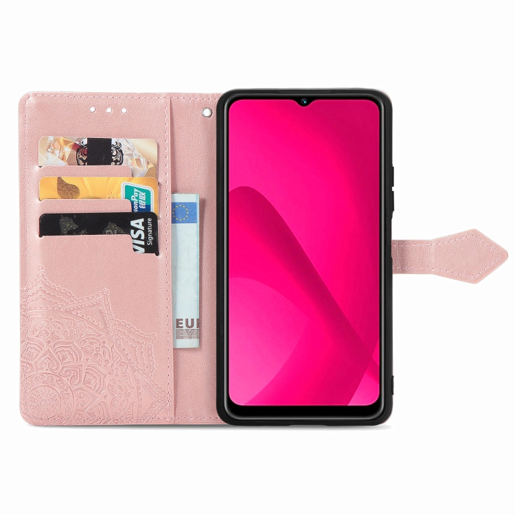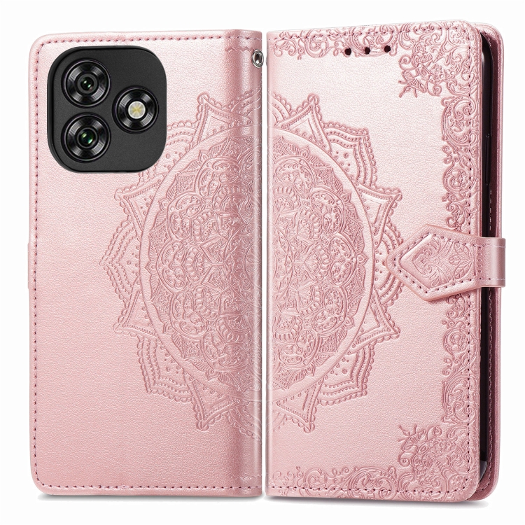Funda de Cuero con Relieve Flor de Mandala para Teléfono Oukitel C53 (Oro Rosa)
