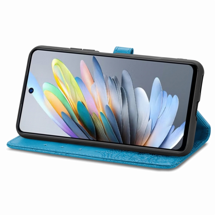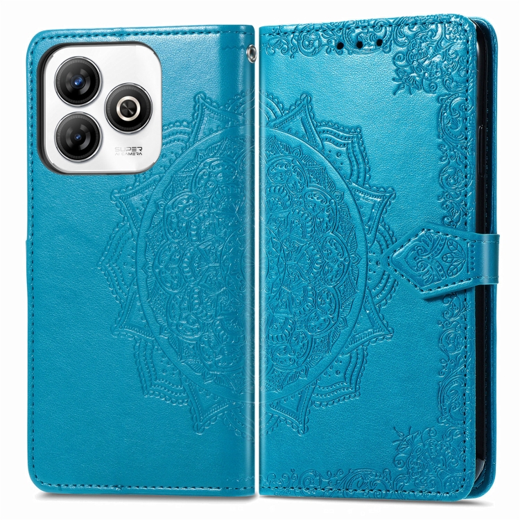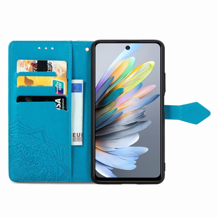 Funda de Cuero con Relieve Flor de Mandala para ZTE Blade A75 4G (Azul)